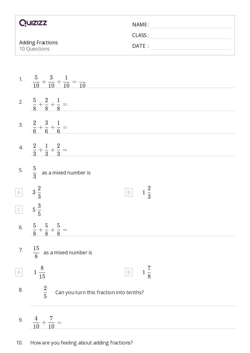 Discovering complimentary 50+ adding fractions worksheets for 4th class on quizizz can be simple and available, you may employ the web browser and explore websites that excel in giving free stuff. Be picky about the online platforms you check out, pick distinguished sites that give high-quality, accurate files.